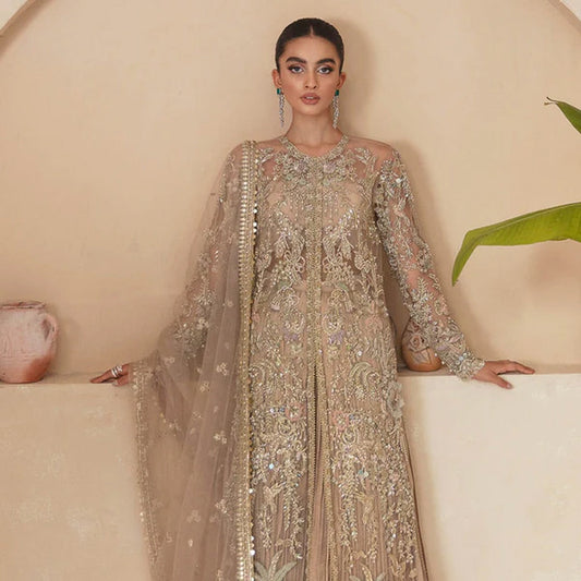 Dahlia is a modern technique masterpiece essayed in dull gold & skin shades curating an...