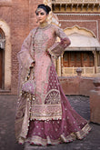 Introducing the exquisite 'Arezoo' ensemble in the enchanting shade of Rose Milk Pink. This ethereal creation features an organza embroidered-embellished shirt with a dark pink hem patch, accentuated by an embroidered-embellished satin silk hem border adorned with twin sequins. The sleeves are a work of art in themselves, showcasing two different organza patches and satin silk border, beautifully embroidered and embellished.The ensemble is elegantly completed with an organza dupatta, featuring two distinct pallus – one in darker pink organza and the other adorned with intricate embroidery on satin silk, along with an alluring four-sided border. The matching gharara, designed in organza with a satin silk finishing border, adds a touch of sophistication and grace to this breathtaking 'Arezoo' ensemble. A perfect choice for brides seeking timeless beauty and sheer elegance.