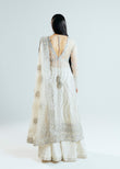 This beautiful ivory outfit definitely makes a style statement. It is paired with foil printed sharara and embroidered dupatta with heavily embellished borders on four sides with sequins, cut dana and with nakashi, dabka, making it a stellar piece.